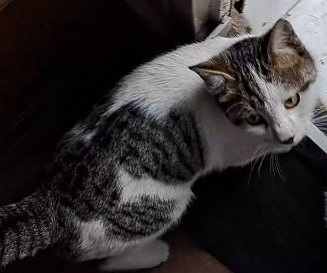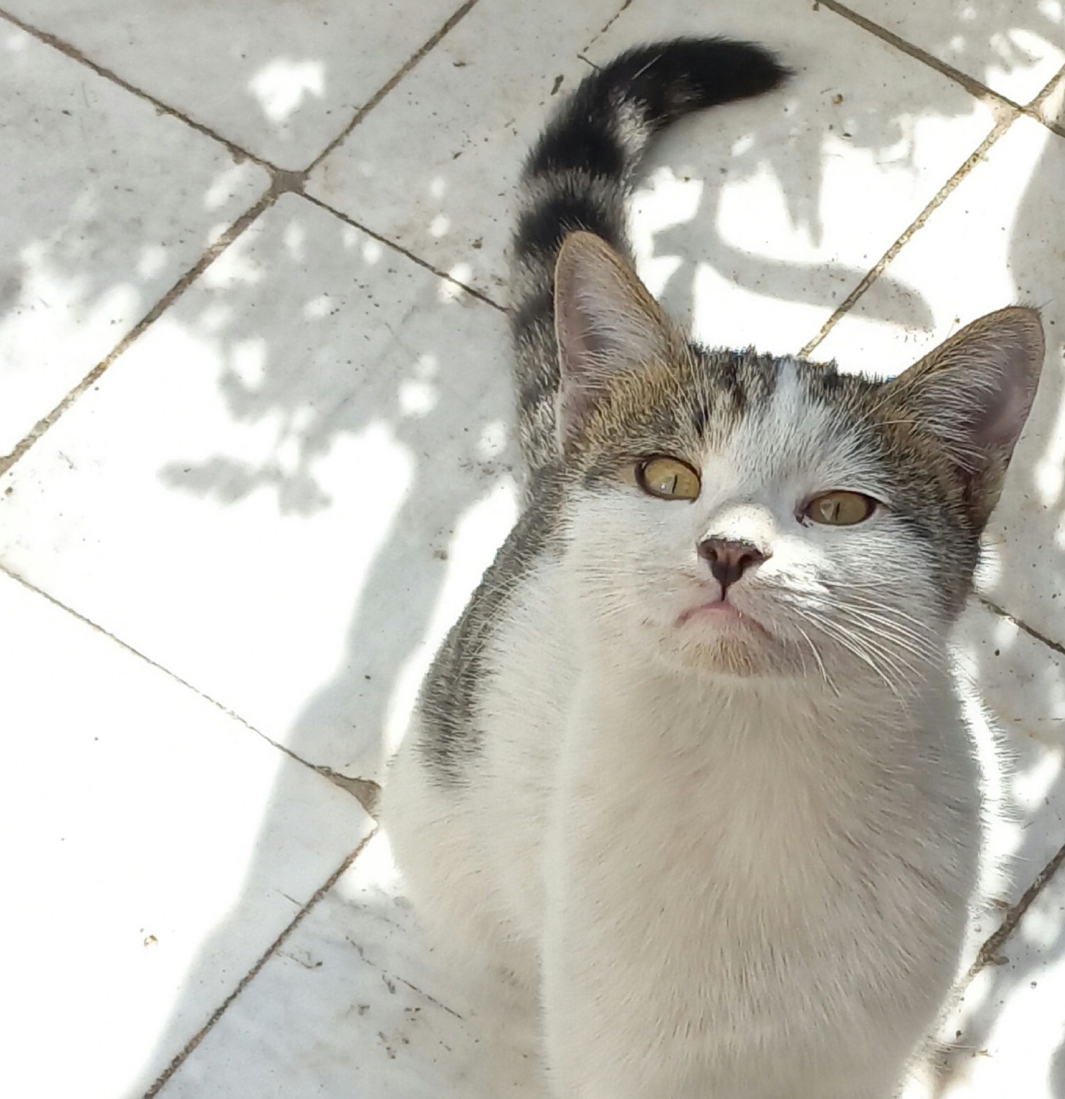 15 فروردین 1404 گمشده. گربه 7 تا 8ماهه، سفید با لک های خاکستری و دم سیاه و خاکستری راه راه. چشم ها زرد. دور بینی خط مثلثی سیاه داره. میو کردنش شبیه مامان گفتن بود. بچه دستی نیست و به تازگی اجازه میداد نوازشش کنیم. محدوده فلکه دوم تهرانپارس گمشده.